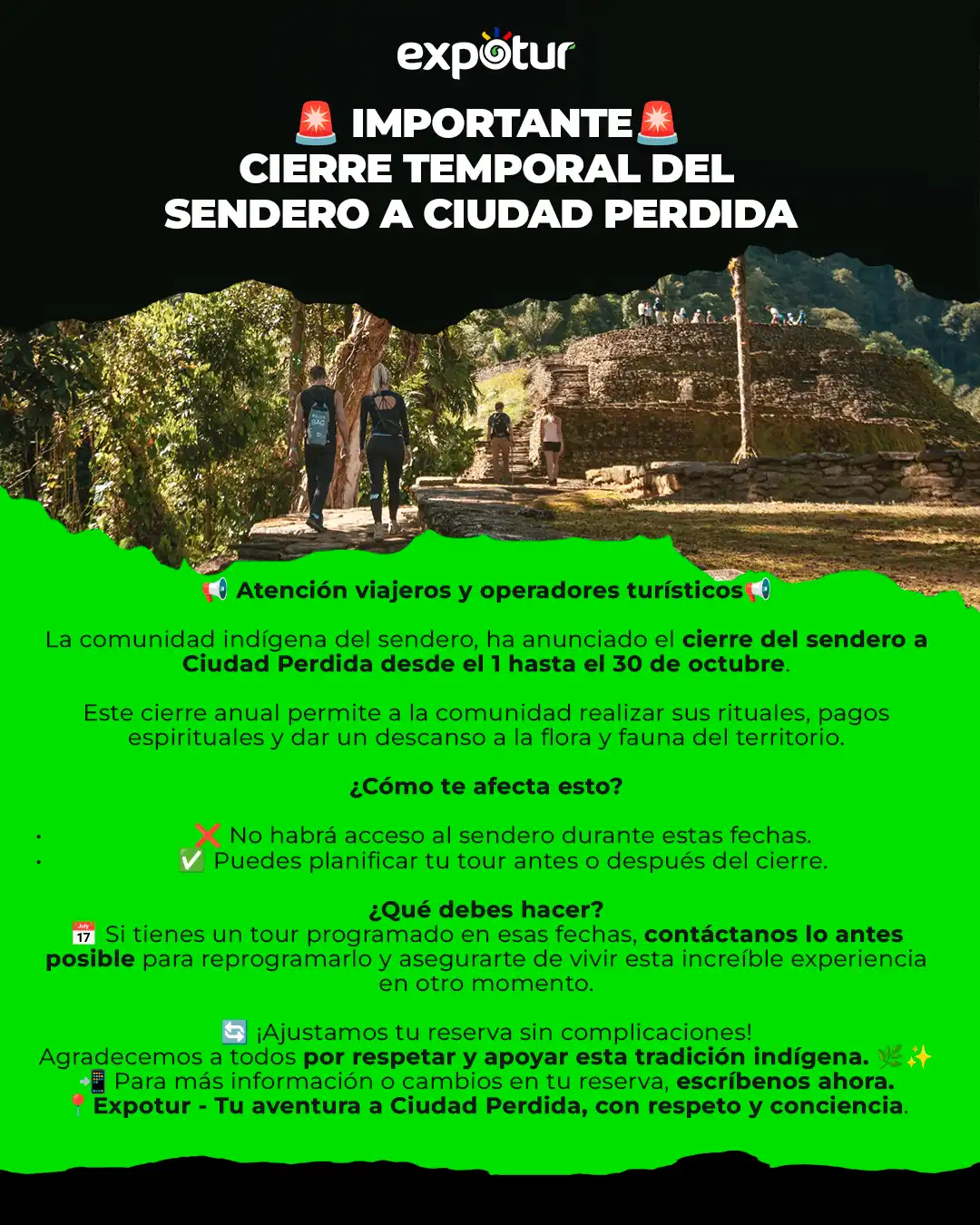 Si decides hacer el tour a ciudad perdida con Expotur, no necesitas preocuparte por tu equipaje extra, ya que podrás guárdalo en nuestra oficina sin costo adicional, mientras realizas el tour.